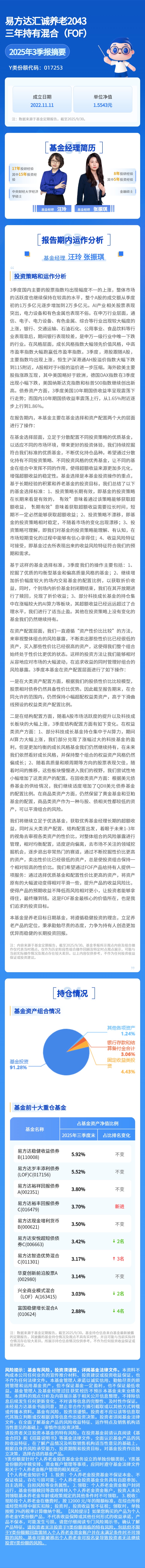 【三季报解读】易方达汇诚养老2043三年持有混合(FOF)Y