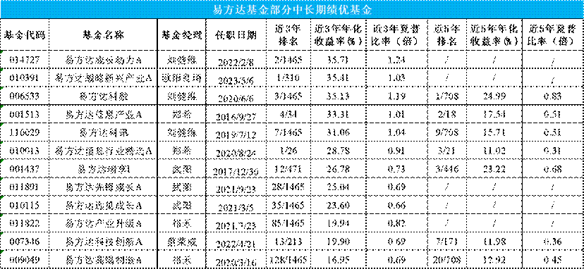 在此背景下,以捕捉超额收益见长的主动权益基金迎来业绩逆转,成为投资者分享市场增长的重要工具。其中,头部权益大厂易方达基金旗下多只主动权益产品业绩亮眼,成为这轮行情中表现较为出色的机构之一。